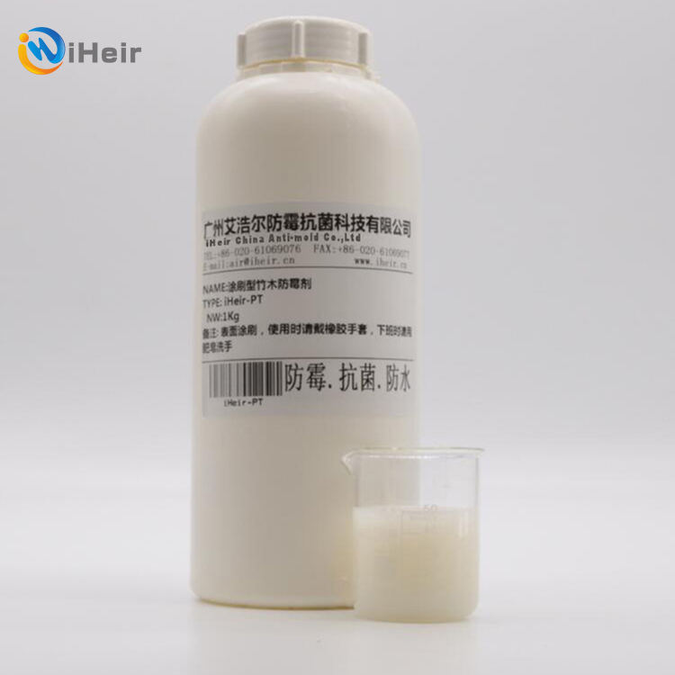 iHeir-PT 竹木防霉劑涂刷型適用于竹木材料在不易浸泡方式防霉處理的情況下使用的一種防霉抗菌產品,其外觀為透明無色液體,能對竹木材料常見的木霉(Trichoderma)、曲霉(Aspergillus)、青霉(Penicillium)和毛霉(Mucor)以及木霉屬真菌中突出主要的綠色木霉等有良好的抑殺作用,從未確保經過處理的竹木材料在潮濕的環境下也可以長時間不會發霉和藍變,本產品已經通過環保認證,不含DMF和重金屬有害物質,經處理的竹木材料可放心出口。