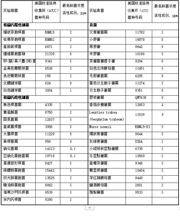 iHeir-TQ環保涂料防霉(抗菌)劑對細菌和真菌的突出低抑菌濃度: